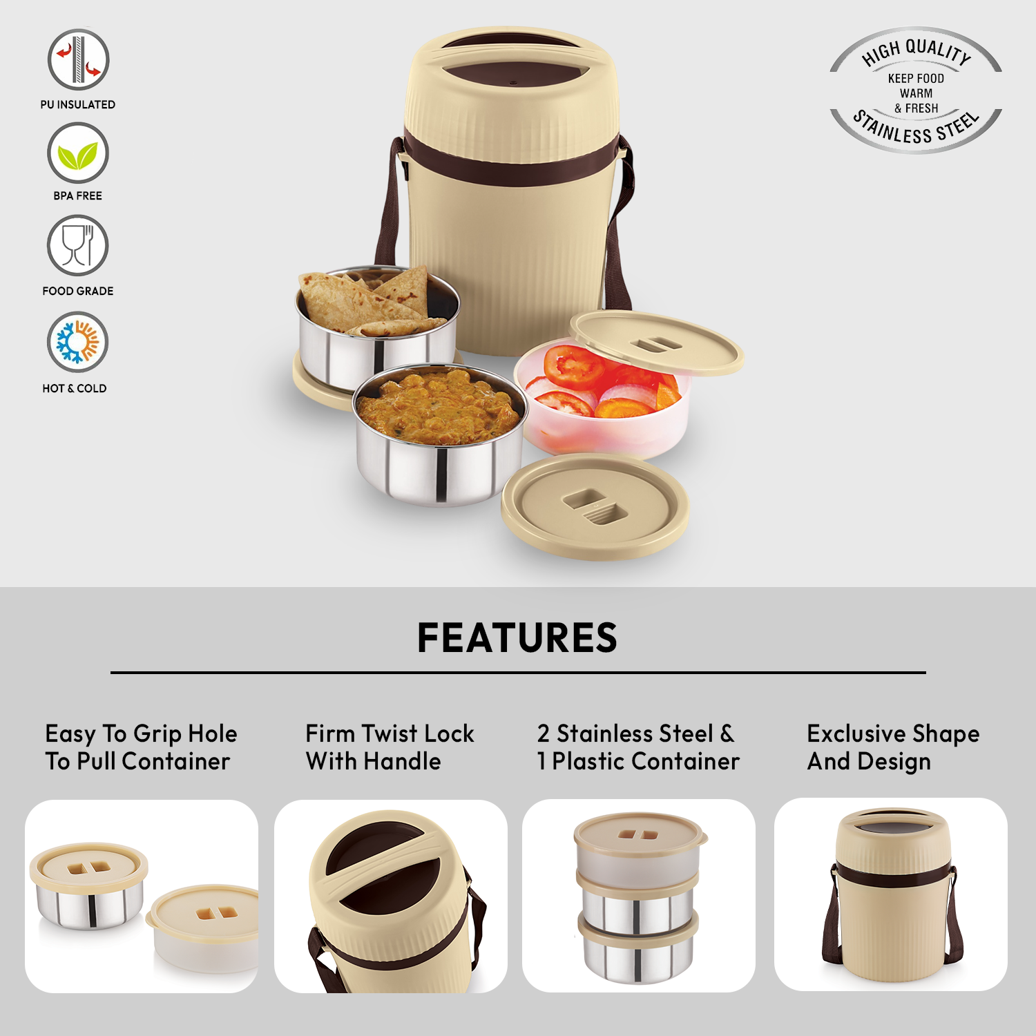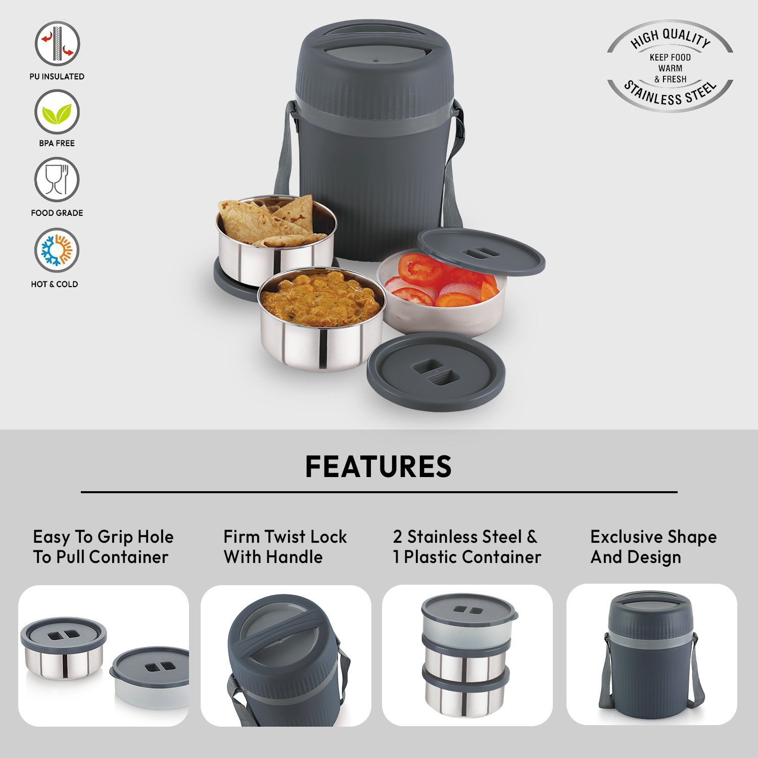 - Material: Premium stainless-steel containers with PUF insulation to maintain food temperature and BPA-free construction