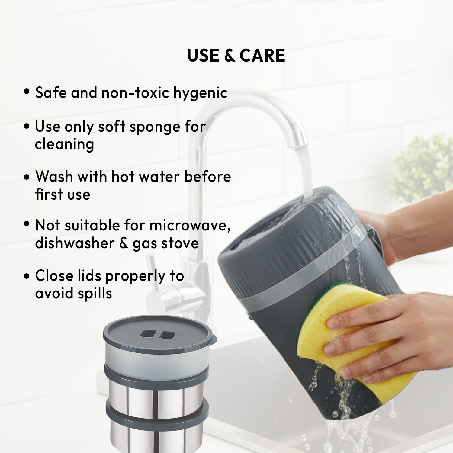 - Convenient Size: With a total capacity of 800 ML, it's perfect for adults and kids alike, providing ample space for your favorite meals. Ideal for office, school, college, or picnics, this lunch pot is your go-to solution for on-the-go meals. Never worry about forgetting utensils