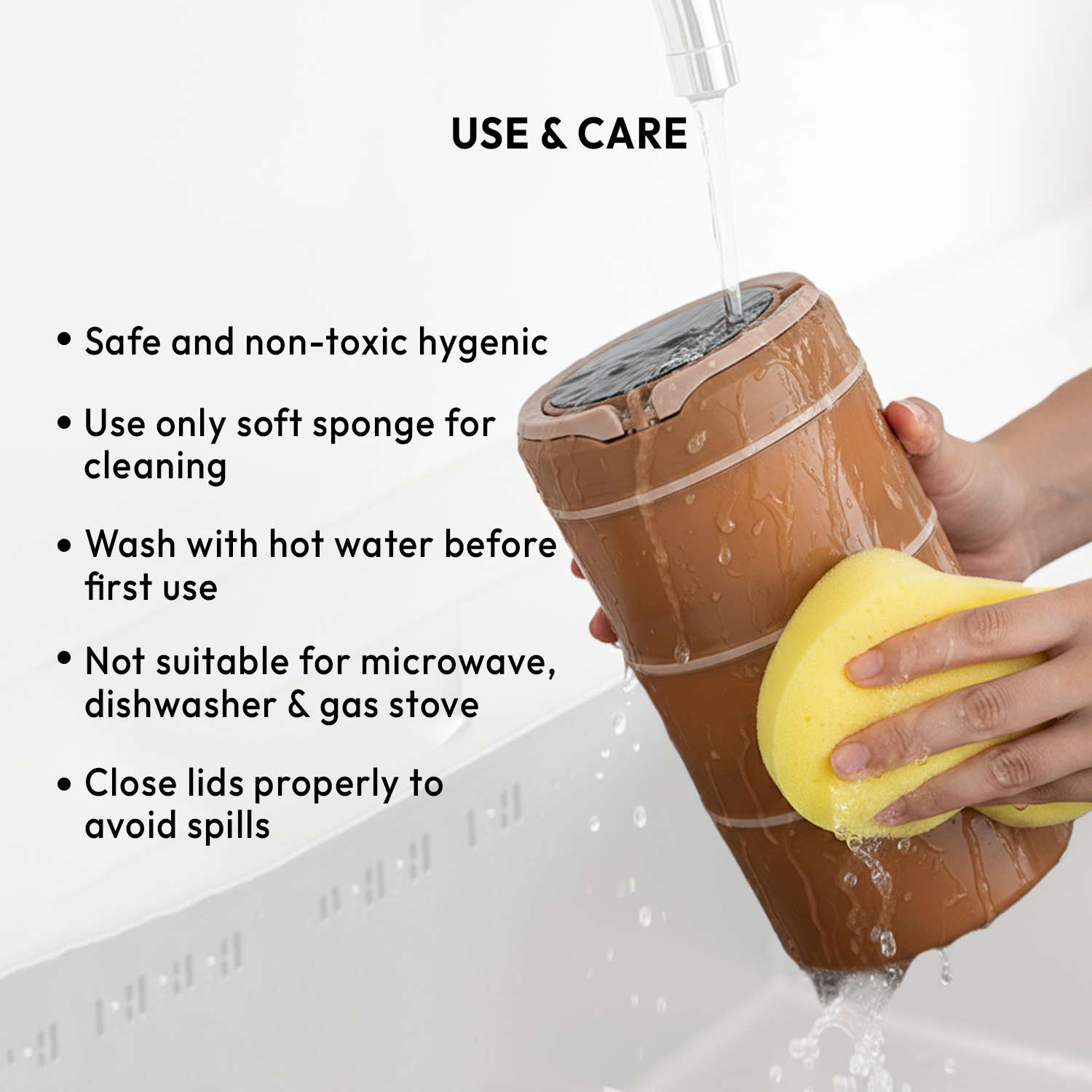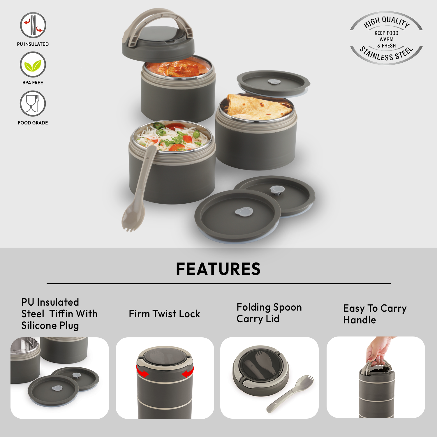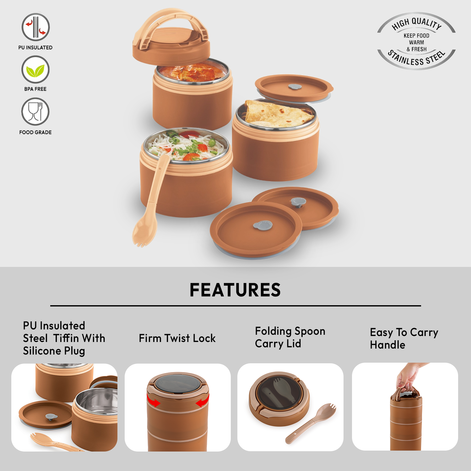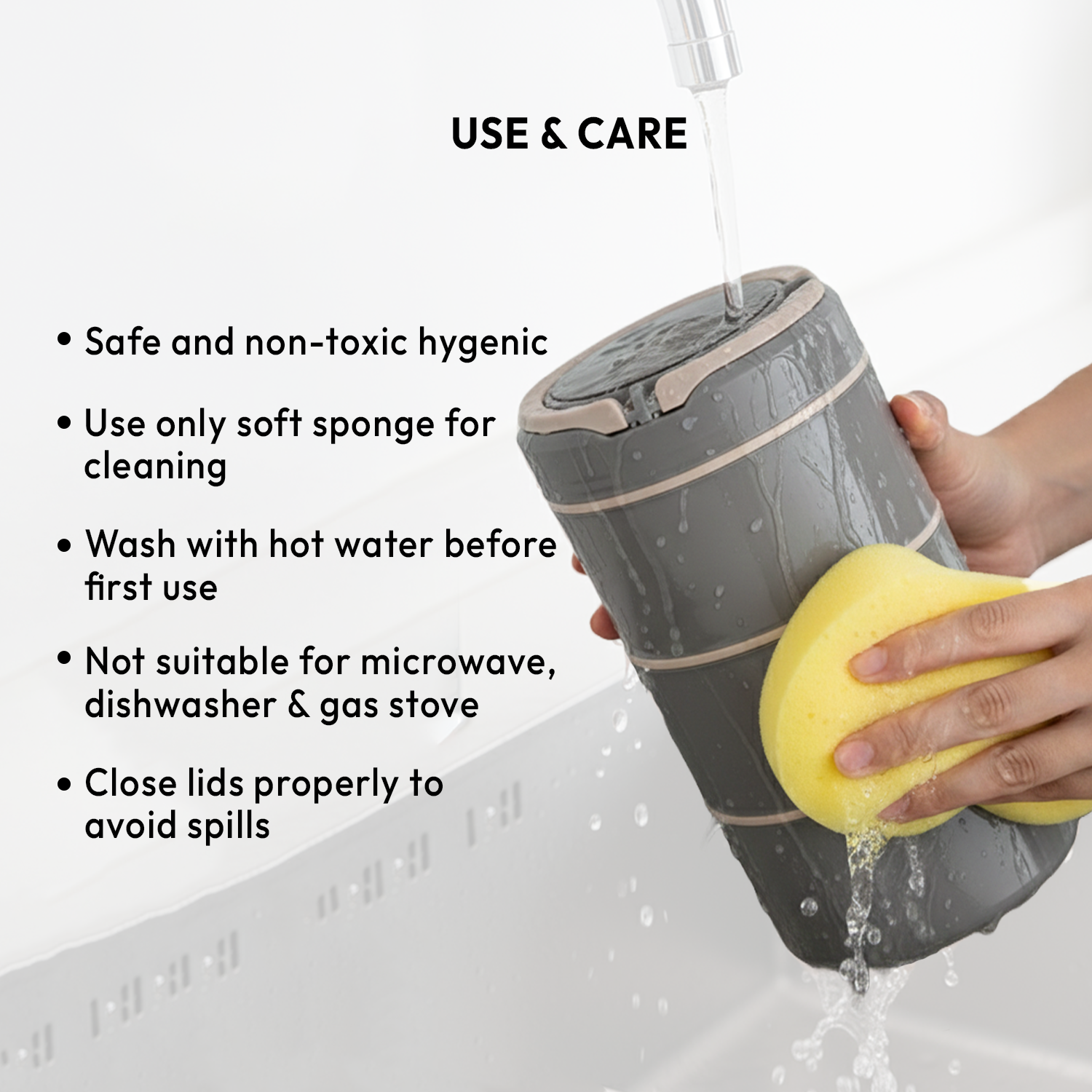 - Material:- Premium stainless-steel containers with PUF insulation to maintain food temperature and BPA-free construction.