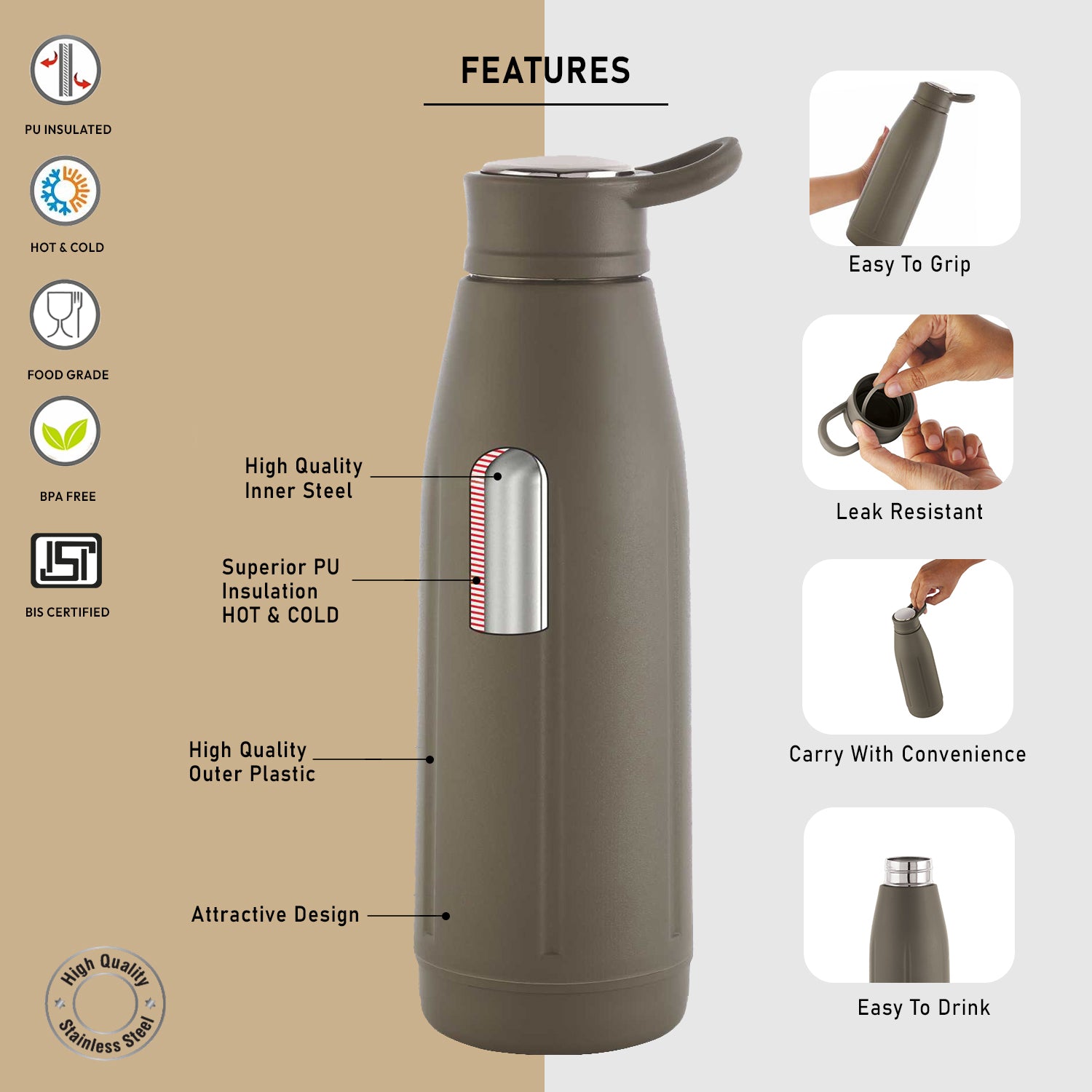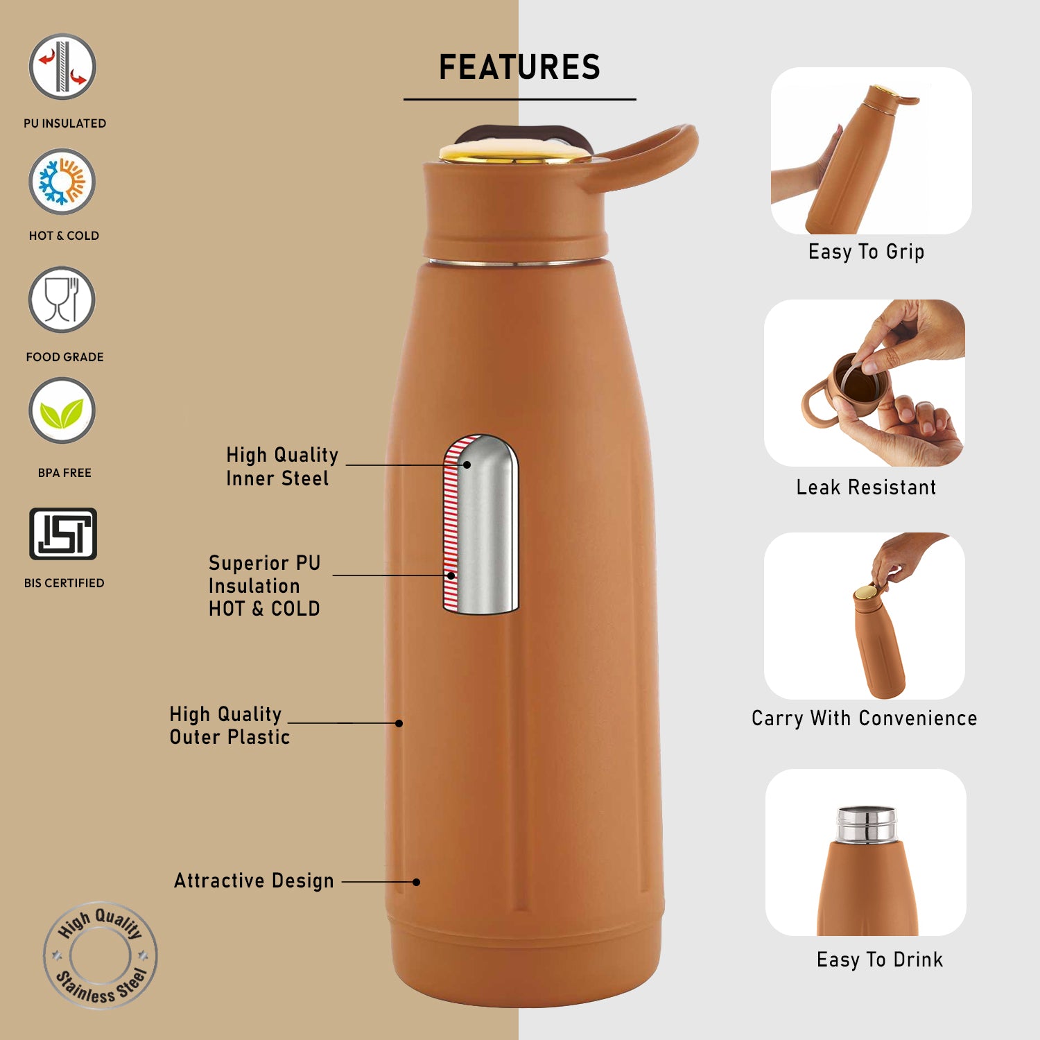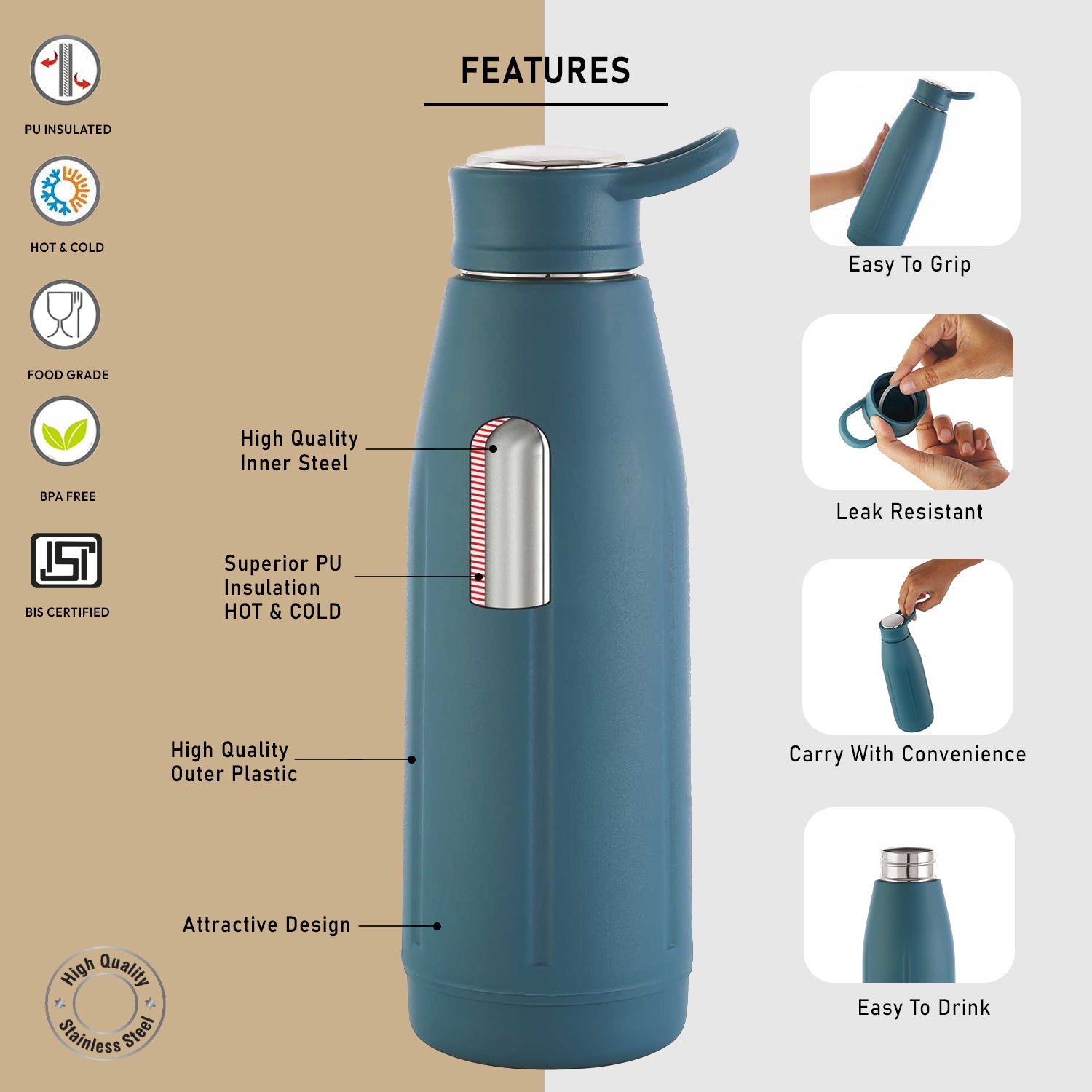 - This bottle is made from Inner Stainless Steel and Outer Plastic water bottle, ensuring safety, rust-proof durability, and long-lasting performance for storing your beverages.